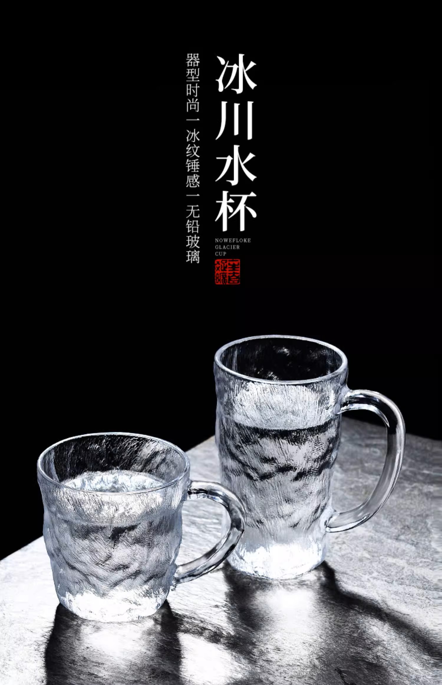 冰川纹玻璃杯马克带把手高颜值水杯男